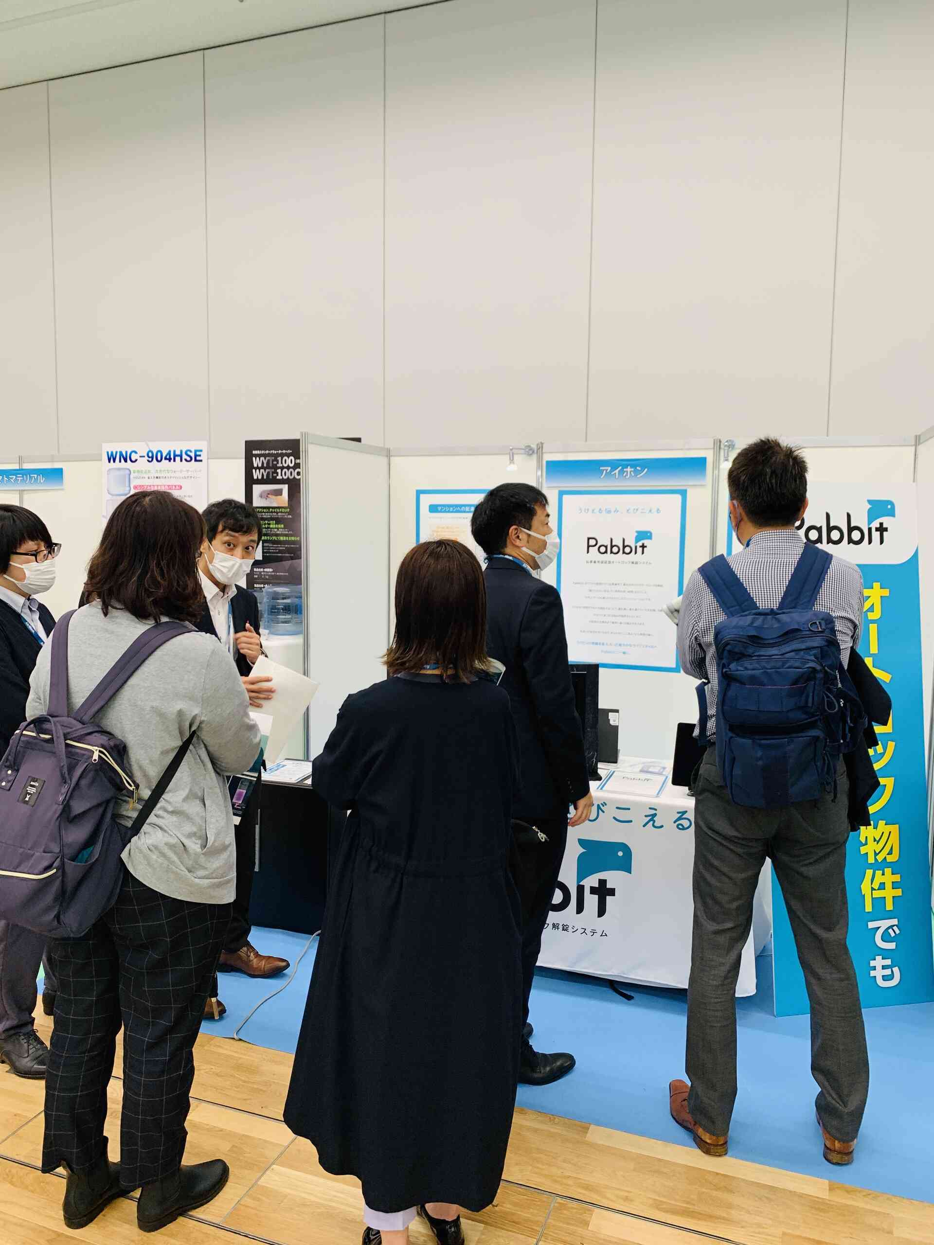 さる 5 月 13 日(金)、都立産業貿易センターで開催された「第 8 回宅配水業界交流展」において、弊社ビジネスパートナーアイホン株式会社と共に荷物認証型宅配システム「Pabbit」を披露し、沢山の来場者から関心を寄せていただきました。近年、一般家庭のウォーターサーバー需要が急増しています。「Pabbit」はオートロック付きマンションでも置き配を可能にし、定期的に大容量ウォータータンクを届ける宅配水業者を再配達から解放するソリューションとなります。