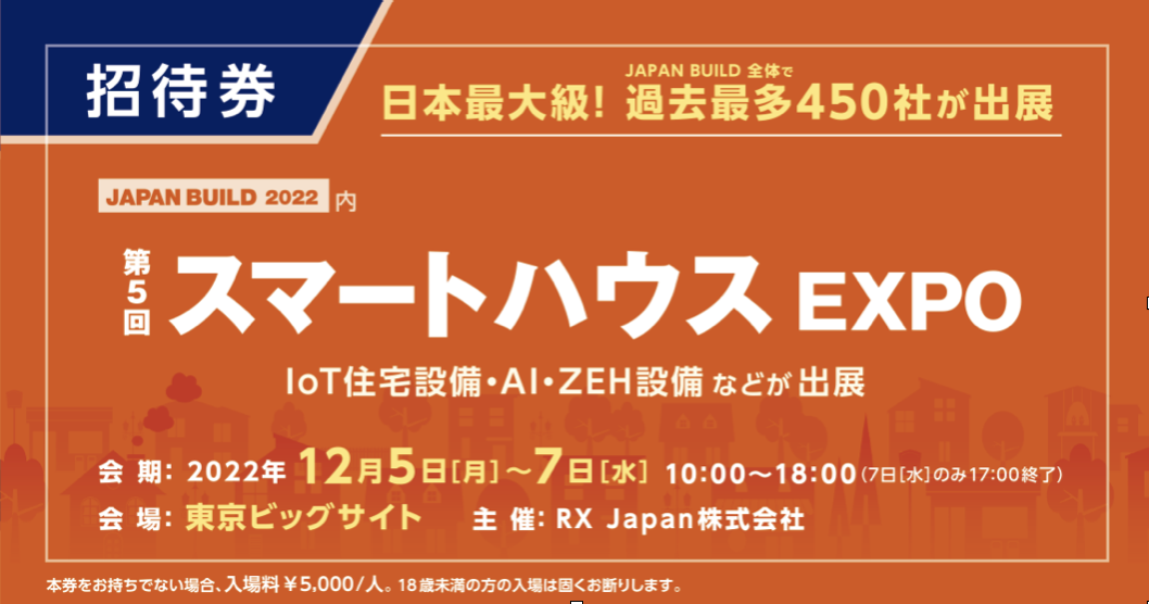 公開時間2022年11月14日【出展のご案内】第5回スマートハウスEXPO(東京ビッグサイト ブース番号18-40) アイホン(株)と(株)PacPort が共同開発した話題の荷物認証宅配システム「Pabbit」のデモをぜひ会場でご覧ください。ご来場をお待ちします。 【e 招待券】ご来場当日、こちらの QR コードを自動受付にかざしてご入場ください 弊社展示内容について: 弊社展示内容 第 5 回スマートハウス EXPOHP: 第 5 回スマートハウス EXPOHP